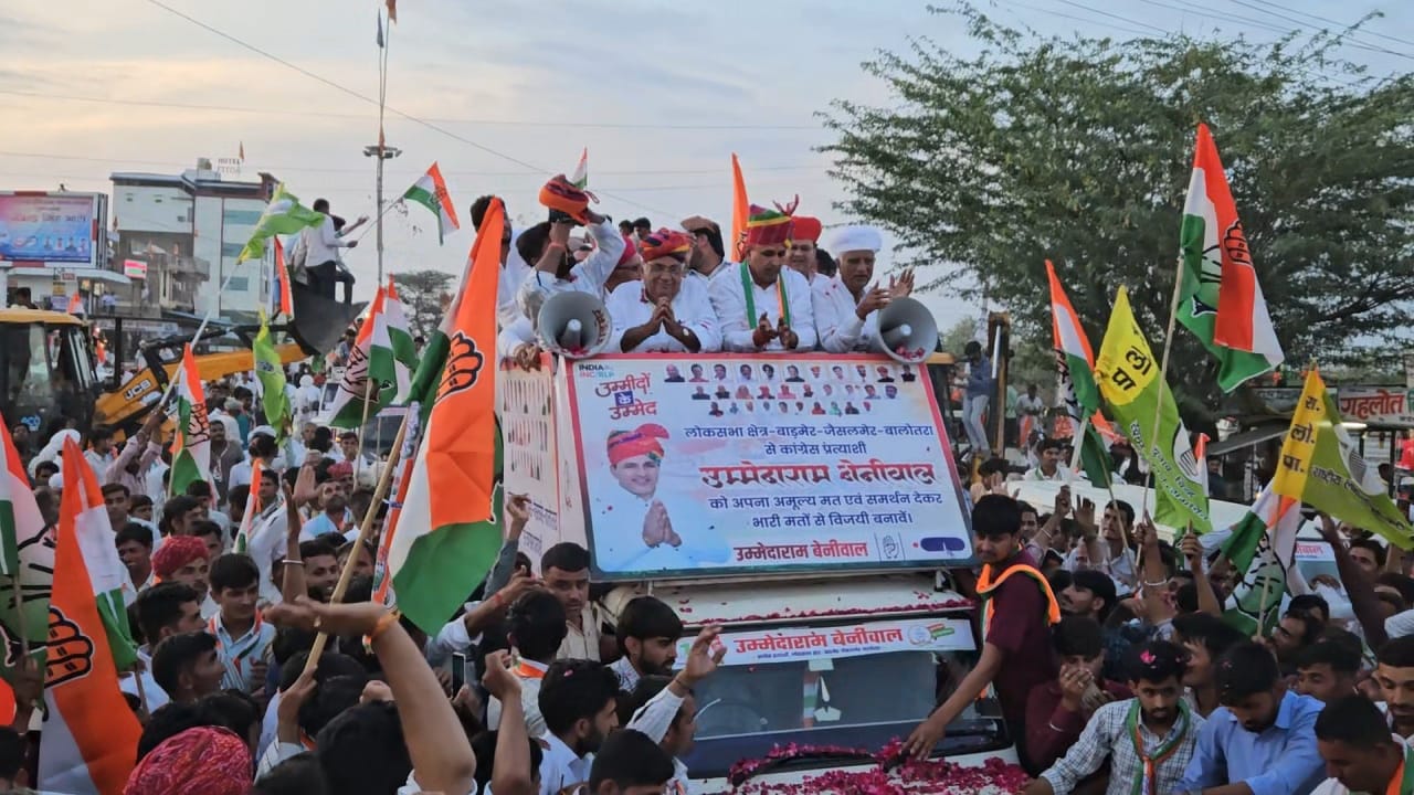 लोकसभा चुनाव को लेकर कांग्रेस प्रत्याशी उम्मेदाराम बेनीवाल की ओर से गुड़ामालानी में रोड शो का आयोजन किया गया जिसमें बड़ी संख्या में लोग शामिल हुए गुड़ामालानी के अहिंसा सर्किल पर जेसीबी से पुष्प वर्षा कर उम्मेदाराम बेनीवाल के गुड़ामालानी पहुंचने पर स्वागत किया गया कांग्रेस प्रत्याशी उम्मेदाराम बेनीवाल के रोड शो में पूर्व कैबिनेट मंत्री हेमाराम चौधरी कांग्रेस नेता कर्नल सोनाराम चौधरी सिवाना से पूर्व विधायक गोपाराम मेघवाल रोड शो में शामिल हुए मुख्य बाजार से राणा प्रताप बाजार होते हुए मेला मैदान तक रोड शो का आयोजन हुआ उसके बाद मैला मैदान में एक विशाल जनसभा आयोजित की गई जिसमें बोलते हुए पूर्व मंत्री हेमाराम चौधरी ने कांग्रेस से प्रत्याशी उमेदाराम बेनीवाल के समर्थन में वोट मांगे और कहा कि उम्मेदाराम की जीत और हार आप लोगों के हाथ में है जनता का मन काम करता है और मुझे भरोसा है आप लोगों का उम्मेदाराम पर मन है कांग्रेस पार्टी एक बड़ा घराना है। उम्मेदाराम बेनीवाल ने भाजपा पर निशाना साधते हुए कहा कि पांच साल में एक काम भी नहीं करा पाए और लोगों को धर्म के नाम पर बांटना चाहते हैं माहोल खराब कर रहे हैं हम सब को कांग्रेस पार्टी को मजबूत करना है कांग्रेस पार्टी अपने घोषणापत्र में किए वादे पूरे करेंगे इसके अलावा कर्नल सोनाराम चौधरी सिवाना के पुर्व विधायक गोपाराम मेघवाल,एडवोकेट सुनीता चौधरी, धोरीमन्ना प्रधान इंदुबाला विश्नोई, पूर्व प्रधान ताजाराम चौधरी, पूर्व प्रधान सोहनलाल भांभू ने भी जनसभा को संबोधित किया।