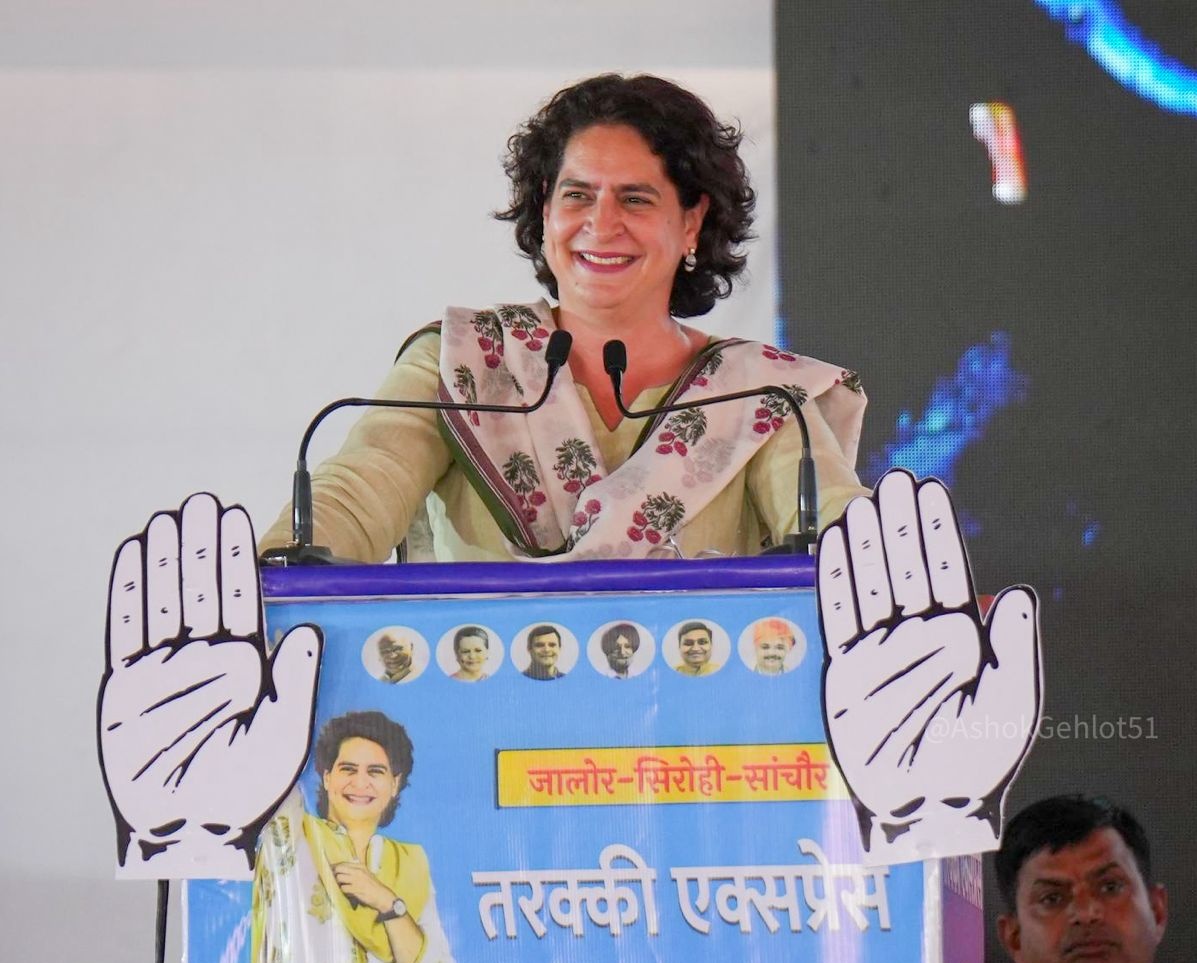 जालोर-सिरोही लोकसभा क्षेत्र से कांग्रेस प्रत्याशी वैभव गहलोत के समर्थन में कांग्रेस पार्टी की राष्ट्रीय महासचिव प्रियंका गांधी ने भीनमाल के शिवराज स्टेडियम में आयोजित जन आशीर्वाद सभा को संबोधित किया और वैभव गहलोत के लिए वोट की अपील करने के साथ ही बीजेपी पर भी जमकर निशाना साधा। उन्होंने कहा कि बीजेपी ने कांग्रेस का गारंटी शब्द चुरा लिया और कांग्रेस की तर्ज पर गारंटी देने लगे हैं उन्होंने कहा कि पीएम नरेंद्र मोदी ने आमजन से वादा किया था कि कालाधन वापस लाया जाएगा, 2 करोड़ नौकरियां दी जाएंगी और 15 लाख रुपए टैक्सपेयर्स के खाते में आएंगे. किसानों की आमदनी दोगुनी की जाएगी, लेकिन हकीकत में इनमें से एक भी वादा मोदी पूरा नहीं कर पाए हैं और लोगों को गुमराह करने का काम किया जा है। प्रियंका गांधी ने कहा “उनकी सारी गारंटियां खोखली बाते हैं, झूठे वादे हैं. कांग्रेस अगर गारंटी देती हैं तो उसे पूरा भी करती है, चाहे आप ओपीएस देख लो या हर परिवार की महिला मुखिया को 1 लाख रुपए देने की गारंटी, कांग्रेस शासित राज्यों में यह पूरी भी की जा रही हैं.” प्रियंका ने कहा कि बीजेपी की ओर से जनता को धर्म के नाम पर, झूठे वादे करके और ध्यान बंटाने वाली बातें बोलकर बरगलाया जाएगा, लेकिन चुनना उसे है जो जनता के लिए काम कर सके और जालोर-सिरोही की तरक्की कर सके. उन्होंने आमजन से अपील करते हुए कहा कि 26 अप्रैल को सोच समझकर और जागरूक होकर जनता के कल्याण में काम करने वाली कांग्रेस पार्टी के उम्मीदवार वैभव गहलोत को वोट करना है। प्रियंका गाउ ने मंच से की गहलोत के कामों की तारीफ प्रियंका गांधी ने अपने सम्बोधन में कहा कि राजस्थान में कांग्रेस सरकार चिरंजीवी योजना लाई थी, लाखों परिवारों ने इसका लाभ उठाया, लेकिन अब 25 लाख का मुफ्त इलाज कराने वाली योजना भाजपा सरकार ने बंद कर दी है और इसके कारण आमजन जनता इलाज से वंचित हो रही है. किसी को इलाज के लिए जमीन बेचनी पड़ रही है तो कोई कर्ज ले रहा है. उन्होंने कहा कि बीजेपी के शासन में महंगाई आसमान छू रही है, पेट्रोल-डीजल और सिलेंडर के दाम बहुत ज्यादा हैं.इस दौरान सभा को पूर्व मुख्यमंत्री अशोक गहलोत ने भी संबोधित करते हुए कहा कि बीजेपी की गलत नीतियों की वजह से आज देश में लोकतंत्र खतरे में आ गया है. बीजेपी संविधान को बदलना चाह रही है. कांग्रेस के बैंक खातों को सीज कर दिया गया, ताकि पार्टी चुनाव ही न लड़ सकें. नरेंद्र मोदी झूठ बोलकर जनता को बेवकूफ बना रहे हैं. ईडी, सीबीआई जैसी संवैधानिक संस्थाओं का दुरुपयोग कर रहे हैं. उन्होंने कहा कि दो राज्यों के मुख्यमंत्रियों को जेल में डाल दिया गया है. इलेक्ट्रोल बॉन्ड सबसे बड़ा घोटाला है, सुप्रीम कोर्ट के आदेश के बाद चंदे के धंधे का खुलासा हो चुका है. कोरोना की वैक्
