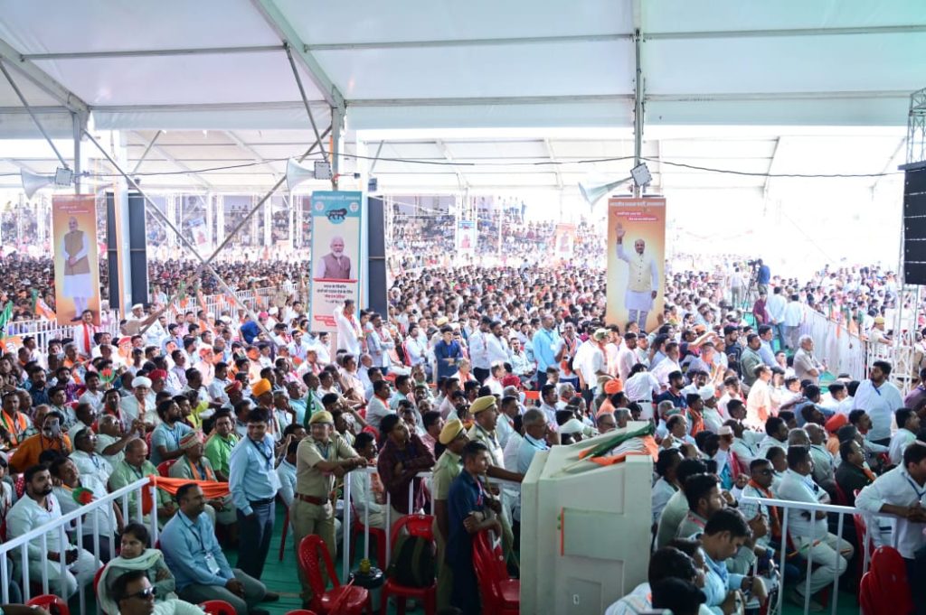 चुनावी सभा को संबोधित करने के लिए प्रधानमंत्री नरेंद्र मोदी विशेष विमान से उतरालई एयरबेस पहुंचे जहां से सड़क मार्ग से आदर्श स्टेडियम में आयोजित विजय संकल्प शंखनाद रैली में पहुंचें जहां पर मुख्यमंत्री भजनलाल शर्मा ने उनका सफा पहनाकर स्वागत किया वहीं मातृशक्ति ने भगवान श्री राम की तस्वीर भेंट की।